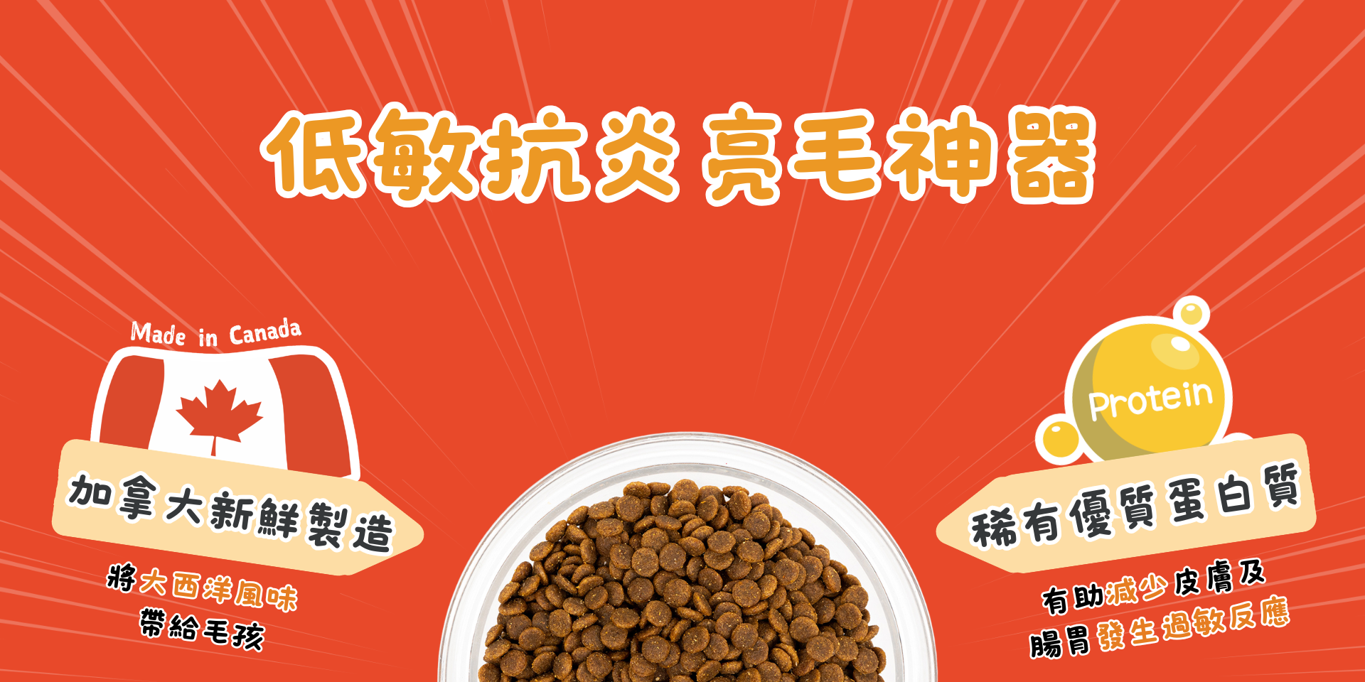 高蛋白質但低脂肪,非常適合對貓咪過敏的寵物。