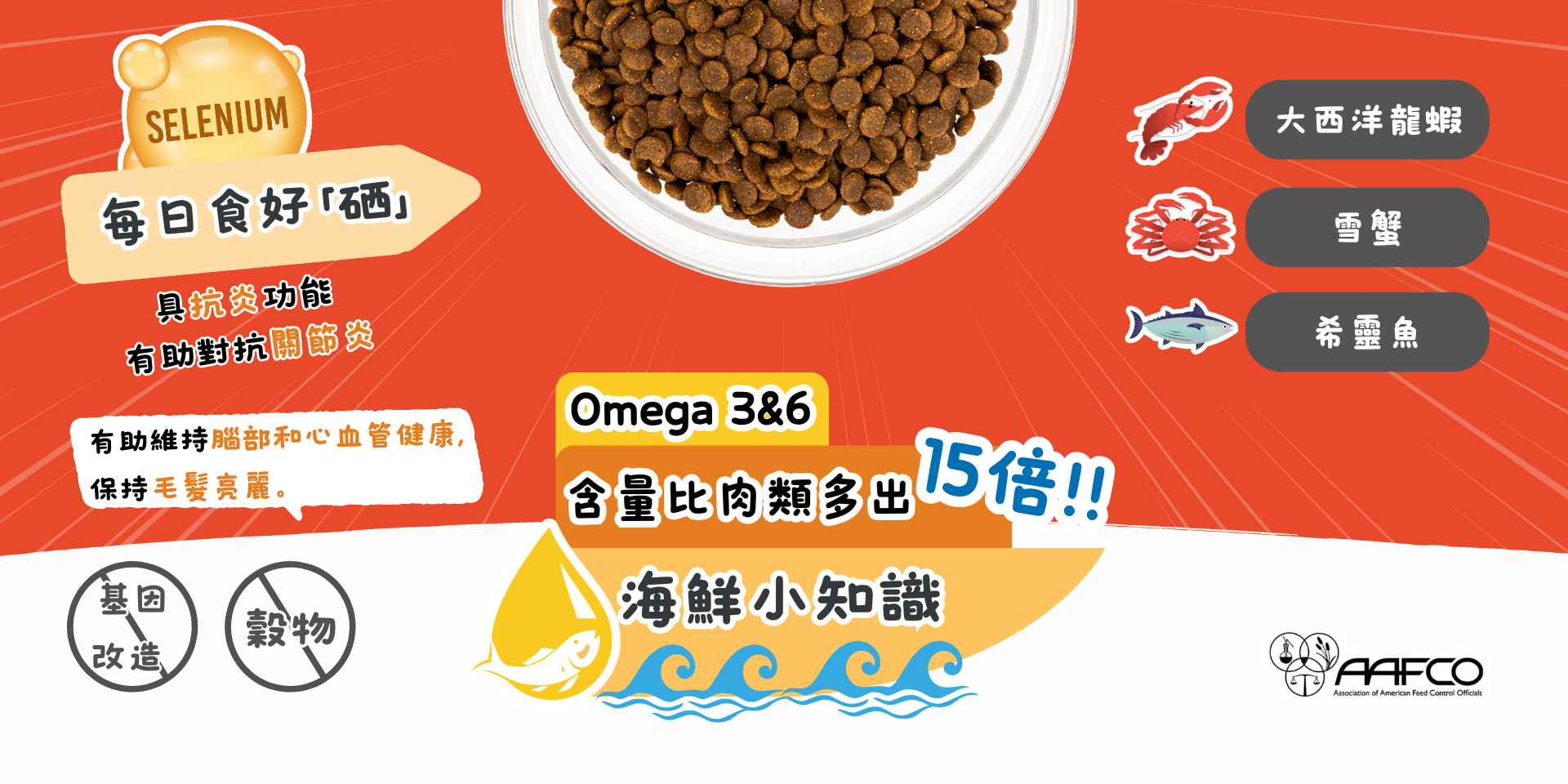 LOVEABOWL 龍蝦雙魚海鮮配方符合美國飼料控制官員協會(AAFCO)所制定的貓糧營養配方設定,適合所有生命階段及成年貓維持所需營養水平。